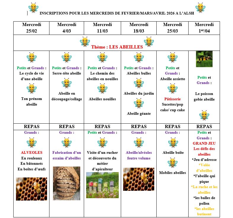 L'ALSH est fermé pendant les vacances de Noël et les 3 dernières semaines d'août.