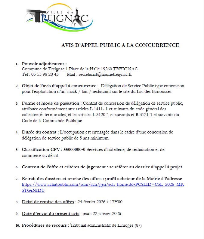 Avis d'appel public à la concurrence pour l'exploitation d'un snack bar restaurant du lac des Bariousses