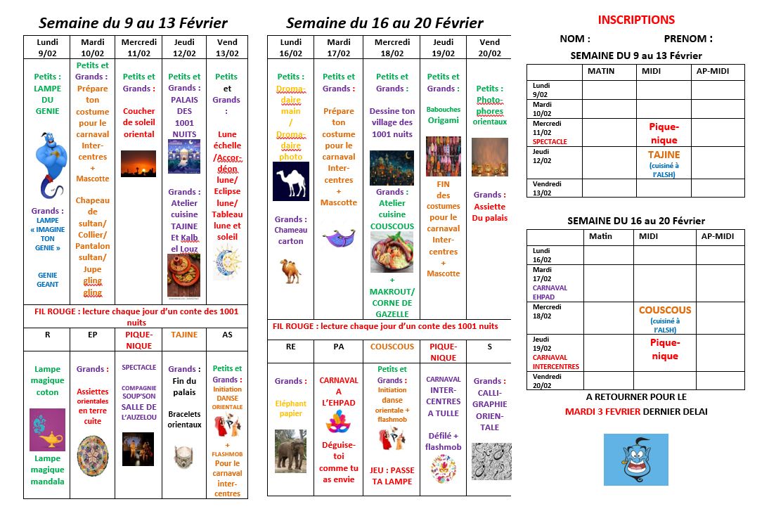 Programme des activités pour les vacances d'hiver du lundi 9 février au vendredi 20 février 2026