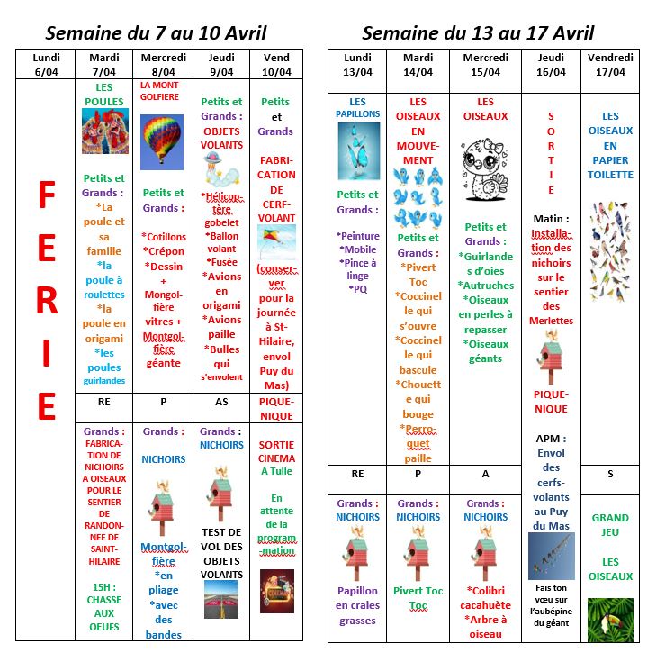Programme de l'ALSH pour les vacances de Printemps