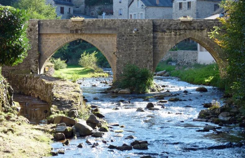 Le Vieux Pont fût signalé en 1492 mais semble être bien plus ancien. Il a remplacé un gué permettant de faciliter le passage de la Vézère. Il est composé de 3 arches et de 2 piles à éperons aigus conçus pour briser le courant parfois intense de la rivière. Ceux-ci offraient aux piétons des retraites afin de laisser le passages aux charrettes, la voie centrale du pont étant relativement étroite. |